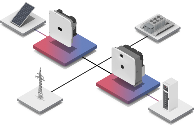 De façon générale, les onduleurs photovoltaïques et les onduleurs-chargeurs travaillent en combinaison avec une installation photovoltaïque. Cela garantit que l’énergie solaire est utilisée efficacement, que les batteries sont chargées et que les besoins énergétiques des bâtiments et du réseau électrique public sont satisfaits.