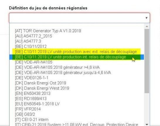 Un nouveau règlement a été publié par l'Union européenne le 27 avril 2016, stipulant de nouvelles conditions de raccordement normalisées pour des parcs non synchrones de générateurs raccordés en courant continu en Europe (Réglementations européennes 2016/631 établissant un code de réseau relatif aux exigences applicables au raccordement au réseau des installations de production d'électricité - code RfG). Ces réglementations européennes se traduit localement en Belgique dans la révision de la norme C10/11. La révision a été approuvée le 1er septembre 2019 et depuis le 1er novembre 2019, ces règles doivent être respectées.