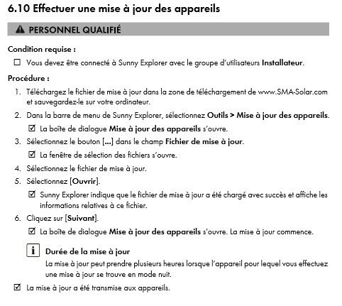 L’ensemble du portefeuille actuel de SMA est conforme à ces nouvelles réglementations. Tous les onduleurs cocnernés seront ajoutés à la nouvelle liste C10/26 à partir du 1er mars 2020. Le firmware des onduleurs doit être actualisé (FW 3.10) : une mise à jour peut être nécessaire.