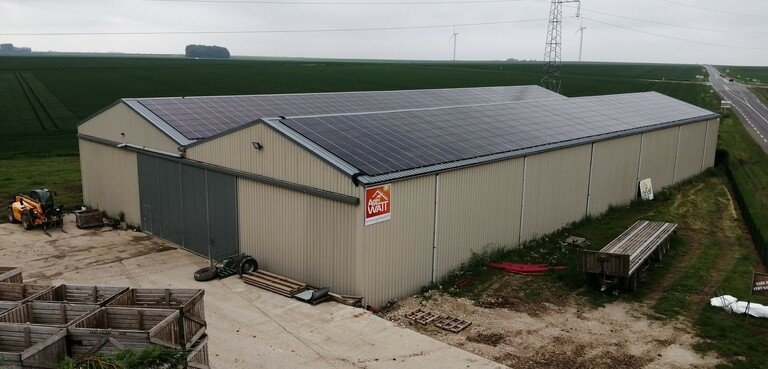 Cet agriculteur de Picardie a choisi de rentabiliser l’espace disponible sur ses toits en installant des panneaux photovoltaïques sur deux hangars de stockage de pomme de terre.